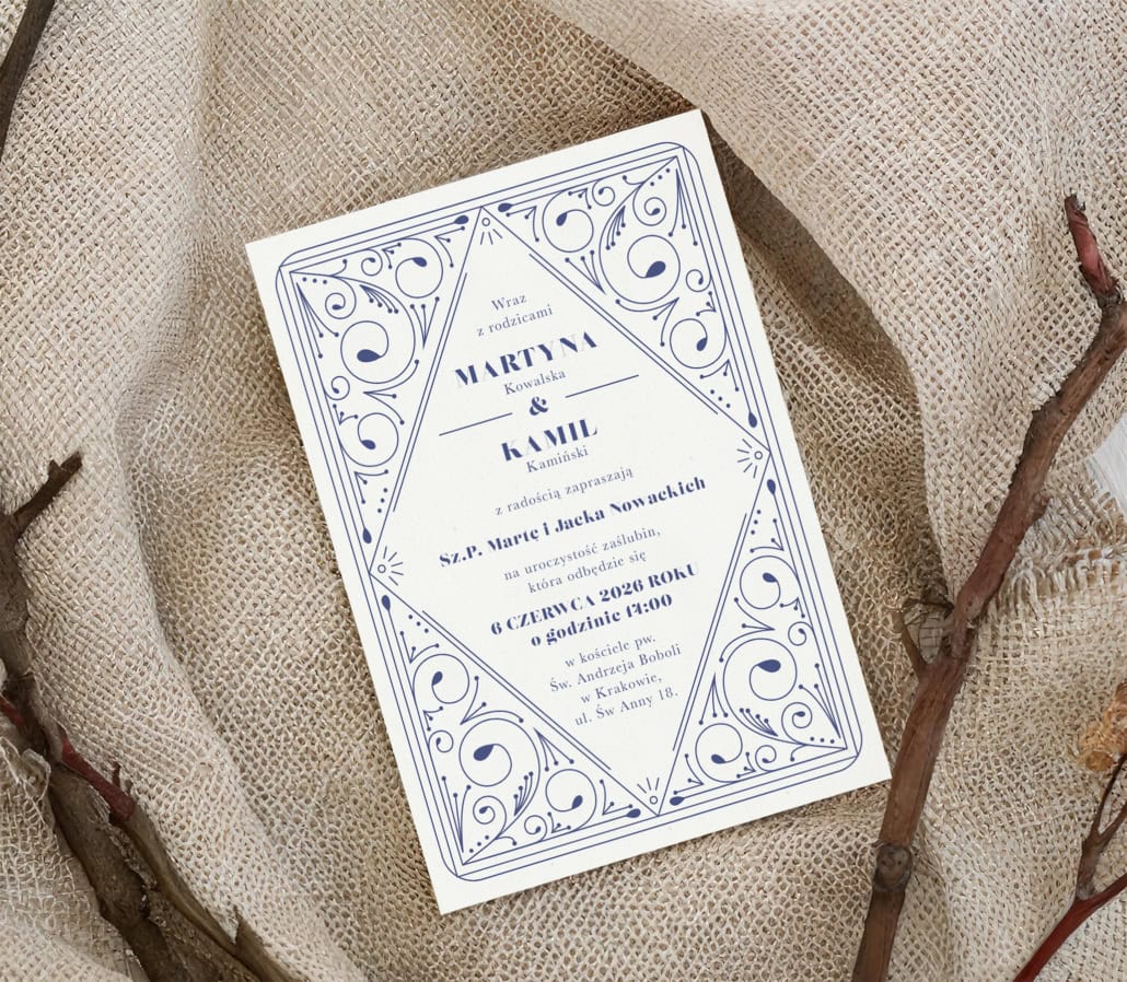 WAŻNE: Prosimy najpierw dodać zaproszenia do koszyka, a dopiero później przejść do zakupu dodatków do zaproszeń (takich jak koperty czy personalizacja zaproszeń).