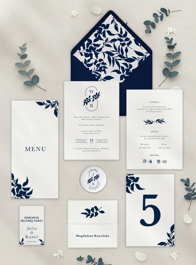 Zaproszenia ślubne Granatowe liście