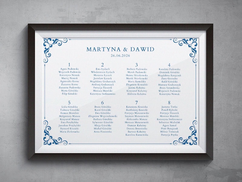 Poznajcie „Granatowy Minimalizm” – kwintesencję ponadczasowej elegancji i klasyki, która nigdy nie wychodzi z mody. Ten wyjątkowy projekt został stworzony dla par ceniących tradycyjne piękno i wyrafinowane detale. Centralnym elementem kompozycji jest misterna, ozdobna ramka w głębokim, nasyconym odcieniu granatu, która nadaje całości królewskiego charakteru.