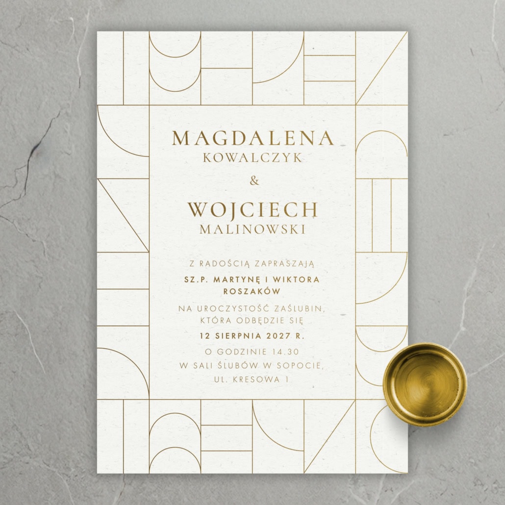 Nowoczesne ornamenty - złote, ornamentalne zaproszenia ślubne i dodatki weselne