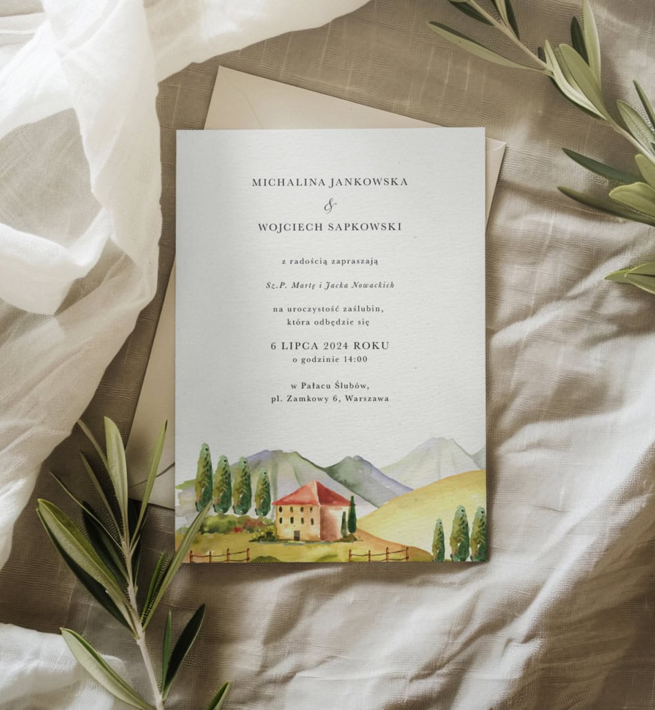 Zaproszenia ślubne z motywem włoskiej wsi