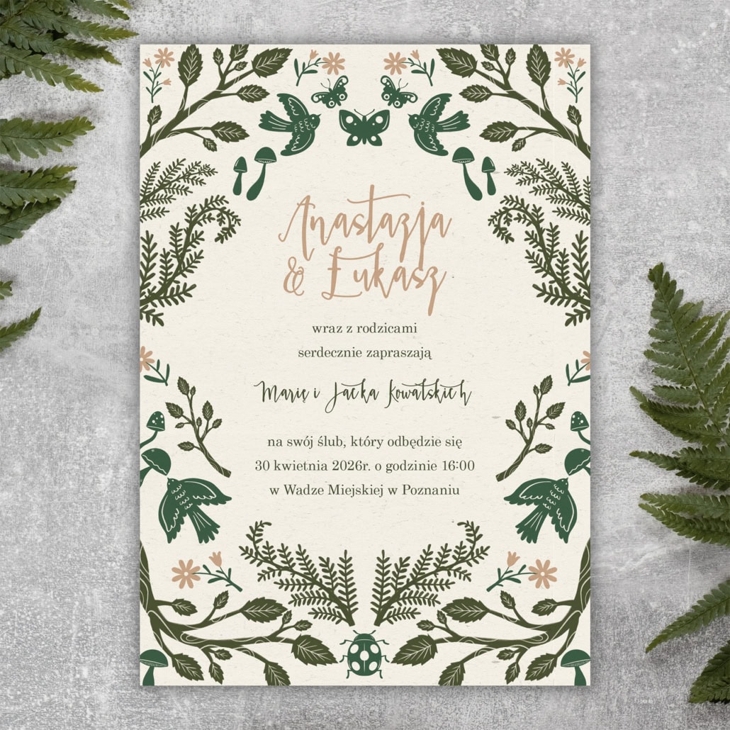 Zaproszenia ślubne Zielony folklor – PRÓBKA