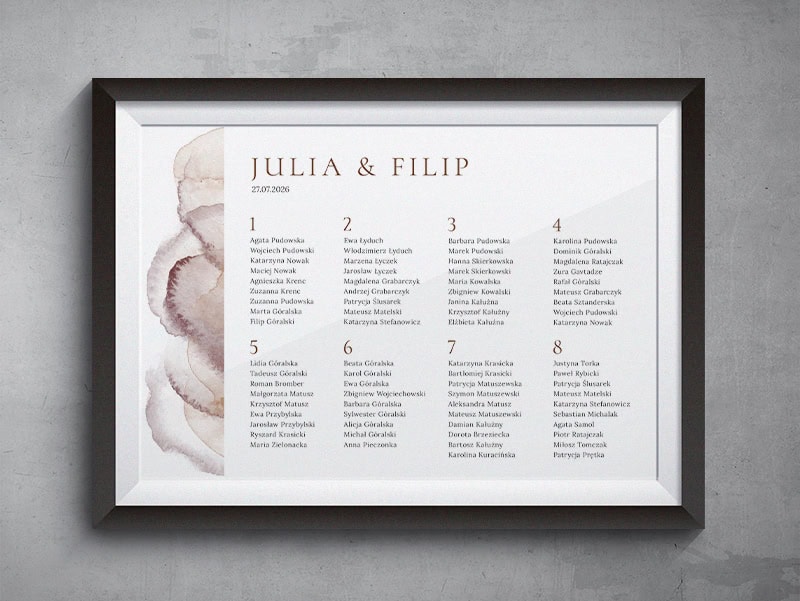 Projekt dopełnia czysta, elegancka typografia, która nadaje mu lekkości i nowoczesnego charakteru. To idealny wybór dla par ceniących wyrafinowaną prostotę i ponadczasowy design w stylu „quiet luxury”.