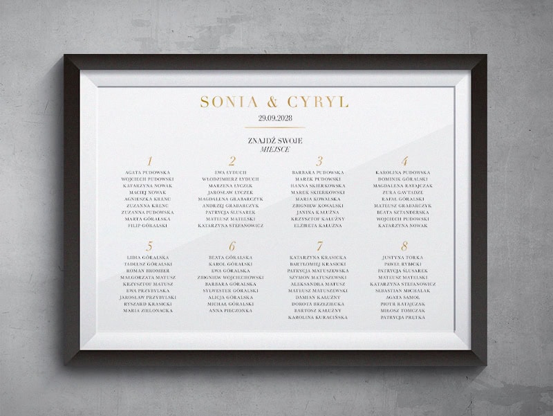 Czysta, szeryfowa typografia na tle aksamitnie gładkiego papieru soft touch tworzy kompozycję pełną klasy, idealną dla par ceniących wyrafinowany i mocny design, w którym liczy się każdy detal.