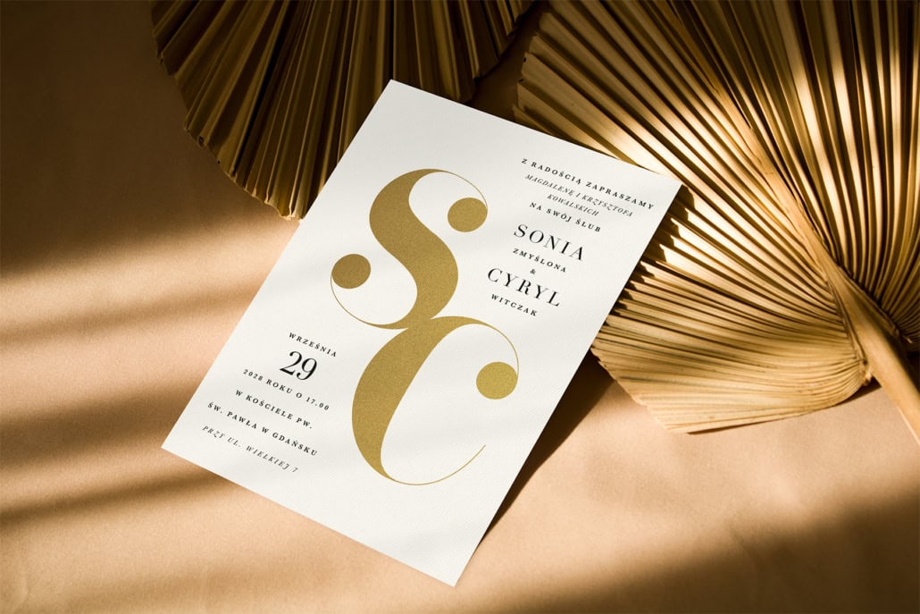 Zaproszenia ślubne Złote inicjały